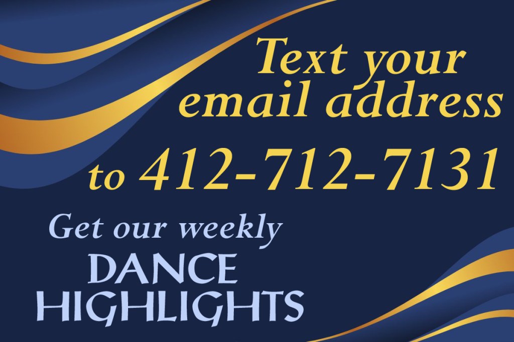 Sarah sends a weekly newsletter highlighting recommended local dance events. Text us your email address to be added to the mailing list: 412-712-7131